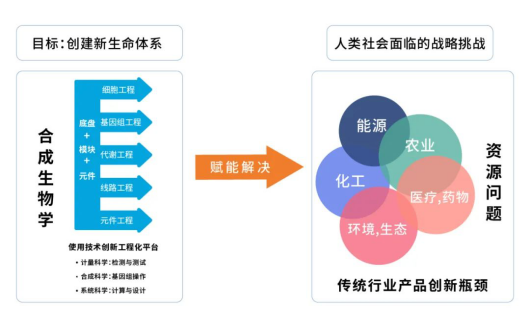 圖丨 Engineering Biology Insights 啟動(dòng)儀式啟動(dòng)儀式結(jié)束后,劉炯圍繞《全球最值得關(guān)注的 50 家合成生物學(xué)企業(yè)》發(fā)表了主題演講,他在演講中分享了合成生物學(xué)的演進(jìn)過程及重要意義,他指出,真正的合成生物學(xué)讓人類擁有了一種造物能力,這是一個(gè)非常復(fù)雜的過程,同時(shí)也是多學(xué)科交叉的產(chǎn)物。圖丨 CB Insights 中國(guó)聯(lián)合創(chuàng)始人劉炯傳統(tǒng)工業(yè)生產(chǎn)的效率亟需 “提速換擋”,這一訴求橫跨化工、能源、環(huán)境、食品甚至是醫(yī)療等眾多板塊。競(jìng)爭(zhēng)加劇,執(zhí)牛耳者必須在效率端自我充能。以合成生物學(xué)為基石的生物合成和制造正在成為引發(fā)變革的主力軍。用工程化思維對(duì)生命體進(jìn)行改造,讓其按需發(fā)揮作用,高效、高質(zhì)量、高集成,這些特性決定了合成生物學(xué)未來將勢(shì)必激起層層新浪潮。多學(xué)科交叉是合成生物學(xué)的基本特點(diǎn),這讓其應(yīng)用情況并不囿于單一領(lǐng)域,同樣呈現(xiàn)交叉和多面的發(fā)展態(tài)勢(shì)。與基礎(chǔ)學(xué)科和單一技術(shù)不同,合成生物學(xué)更像是一個(gè) “工具”,它從利用生物技術(shù)構(gòu)建功能性生命體(細(xì)胞)出發(fā),散射到不同的應(yīng)用版圖。發(fā)展至今,相關(guān)技術(shù)的發(fā)展也逐漸由科研探索驅(qū)動(dòng)開始轉(zhuǎn)向工程能力驅(qū)動(dòng)。圖丨合成生物學(xué)的概念解讀及應(yīng)用方向(來源:公開資料整理)目前,基于合成生物學(xué)理念所成立的公司主要分為三類: