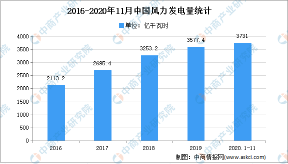 風(fēng)力發(fā)電是指把風(fēng)的動能轉(zhuǎn)為電能,是一種清潔無公害的的可再生能源。數(shù)據(jù)顯示,2019年我國風(fēng)力發(fā)電量達3577.4億千瓦時。風(fēng)力發(fā)電持續(xù)增長,2020年1-11月風(fēng)力發(fā)電量為3731億千瓦時,同比增長10.7%。