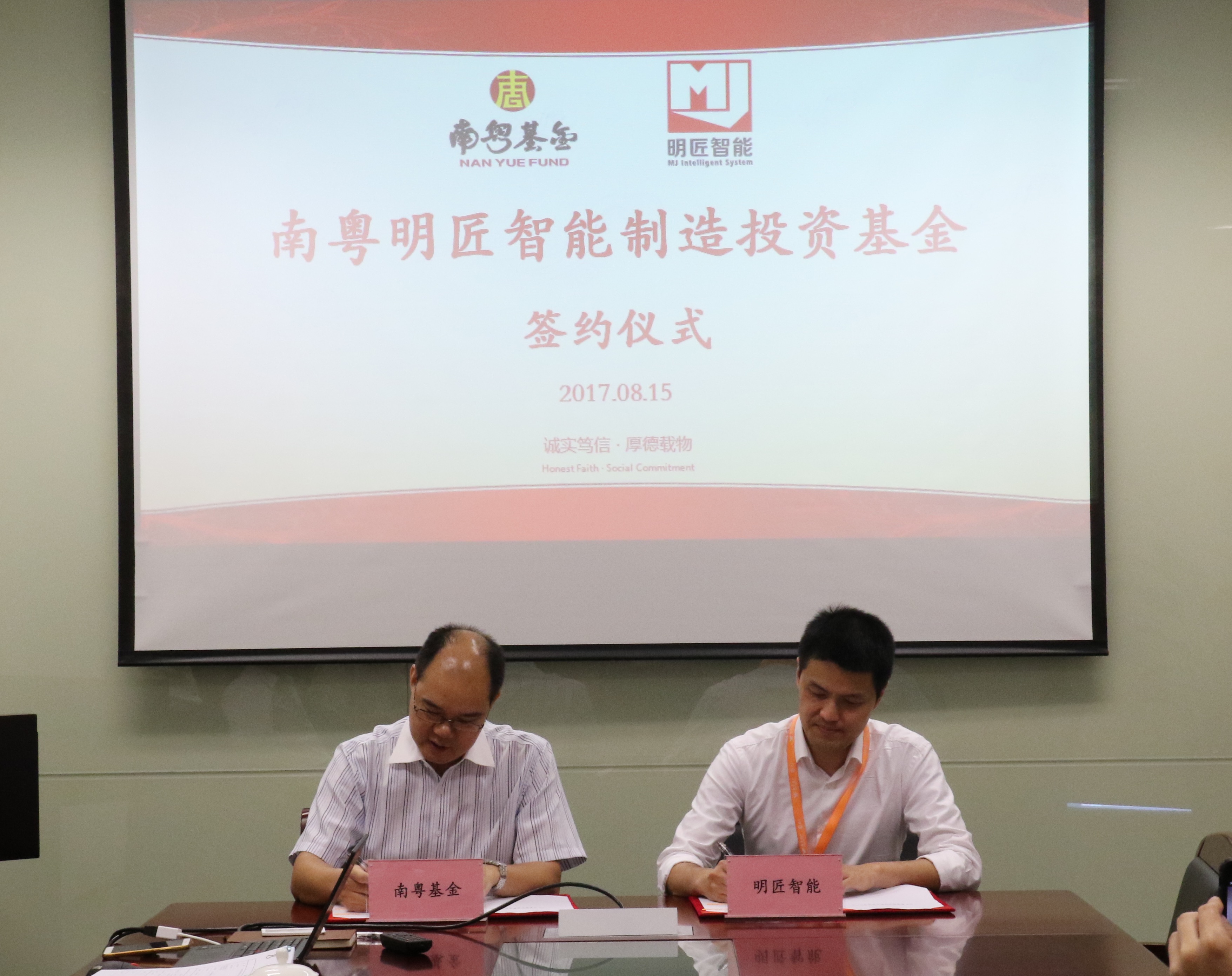 8月15日上午,廣州南粵基金集團(tuán)有限公司(以下簡(jiǎn)稱“南粵基金”)與上海明匠智能系統(tǒng)有限公司(以下簡(jiǎn)稱“明匠智能”)在廣州國(guó)際金融中心共同簽署基金投資協(xié)議。南粵基金集團(tuán)總裁曾金賢、明匠智能公司董事長(zhǎng)陳俊等領(lǐng)導(dǎo)出席本次簽約儀式。