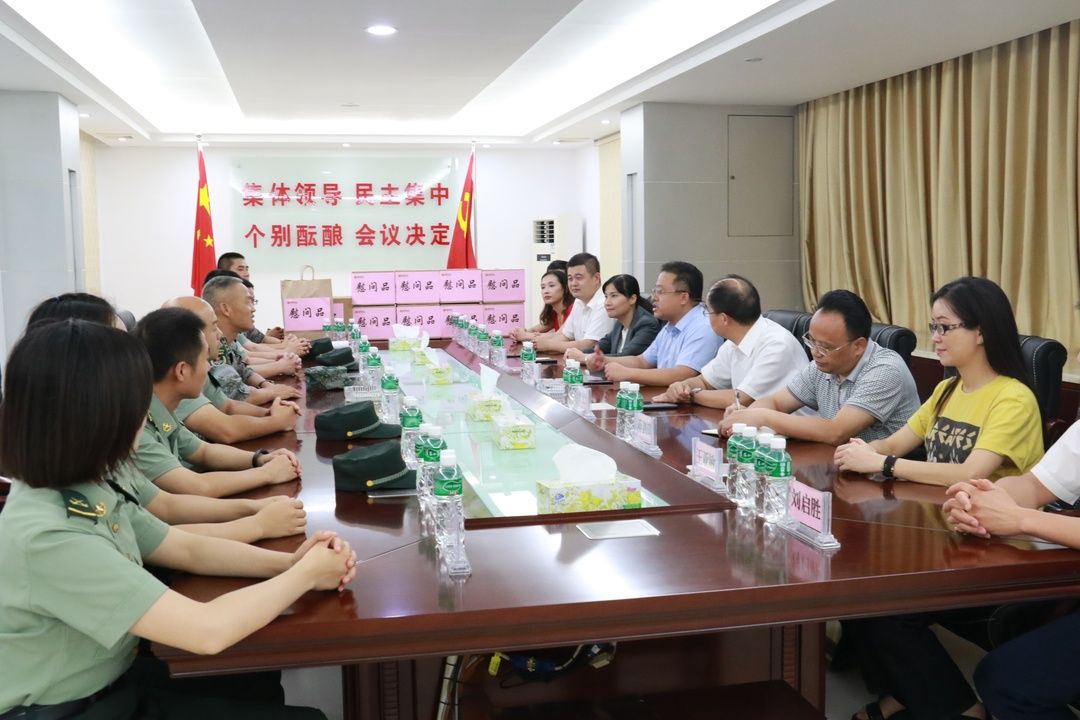 8月1日下午,南粵基金集團(tuán)董事長林濤、總裁曾金賢率隊(duì)走訪慰問中國人民解放軍76328部隊(duì),與部隊(duì)官兵座談,向“最可愛的人”——人民子弟兵送去慰問,共敘軍民魚水情。