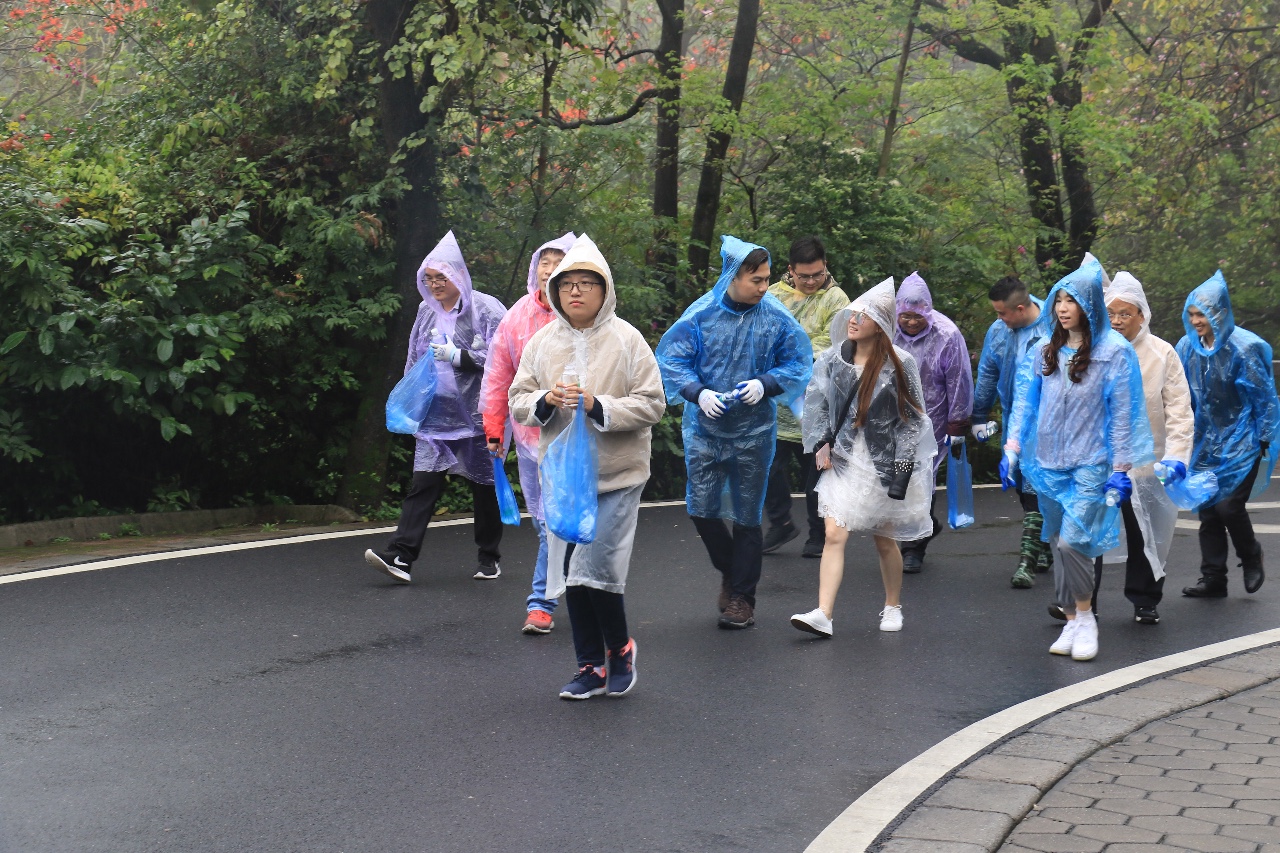 活動當(dāng)天煙霧朦朧、細(xì)雨綿綿,大家熱情高漲,互相鼓勵,相互協(xié)作,昂首前行在濕滑山路上,處處洋溢著南粵大家庭的溫暖與團隊精神。