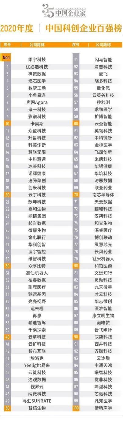 中國科創(chuàng)企業(yè)百強榜單是《中國企業(yè)家》雜志社面向新一代信息技術、高端智能裝備、新能源、新材料、生物醫(yī)藥等集聚科技創(chuàng)新及新基建領域的企業(yè),從科技實力、投資價值、成長價值等指標入手,綜合評估而得出的最終榜單。20年來,該雜志評定的上榜企業(yè),幾乎囊括了當時中國成長最快、創(chuàng)新性最強的早期科技企業(yè),具有行業(yè)風向標意義,騰訊、百度、小米、京東、美團、滴滴等巨頭都曾在早年上榜。此次入選的8家被投企業(yè),分布在智能城市、自動駕駛、智能農(nóng)業(yè)、智能生物技術、下一代智能芯片等多個領域,憑借其在大數(shù)據(jù)與人工智能等行業(yè)的創(chuàng)新實踐,從眾多企業(yè)中脫穎而出。