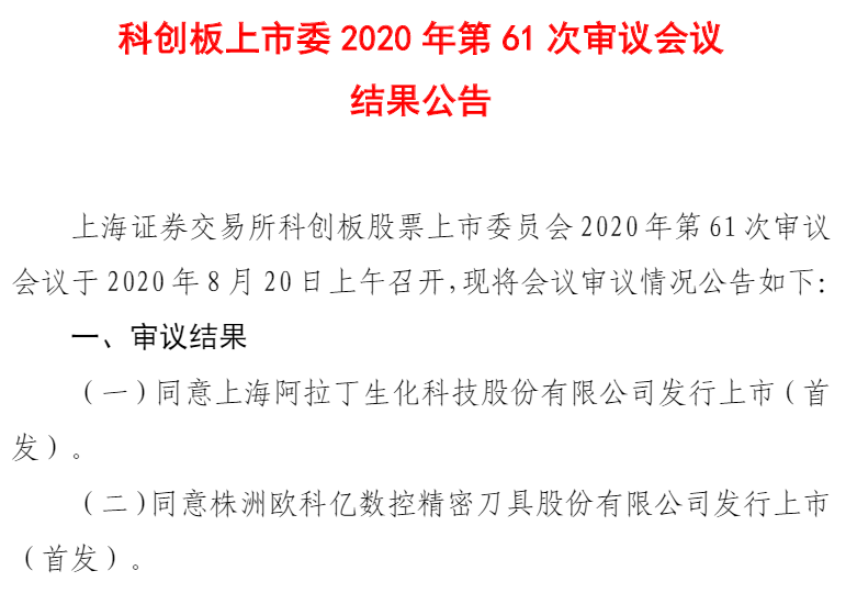 上市委審議結(jié)果公告