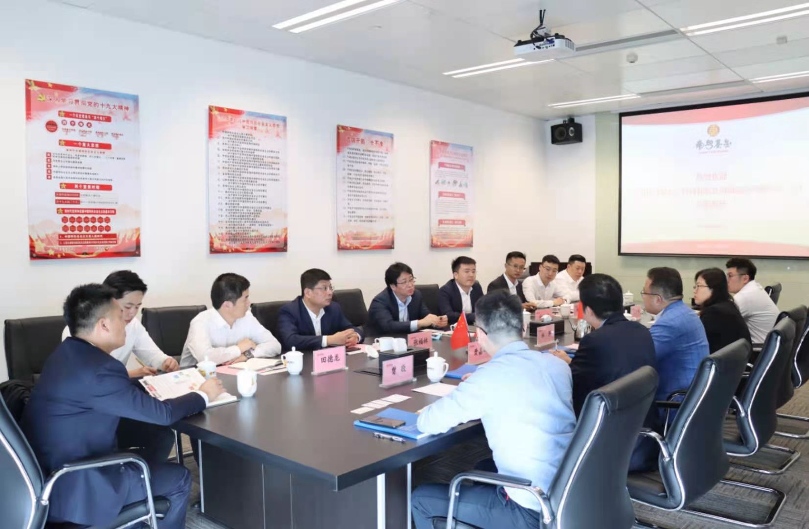 中建八局南方公司副總經(jīng)理向遠鵬、中建八局投資發(fā)展公司華南分公司黨總支書記許云龍,南粵基金副總裁譙菲菲等參加會談。