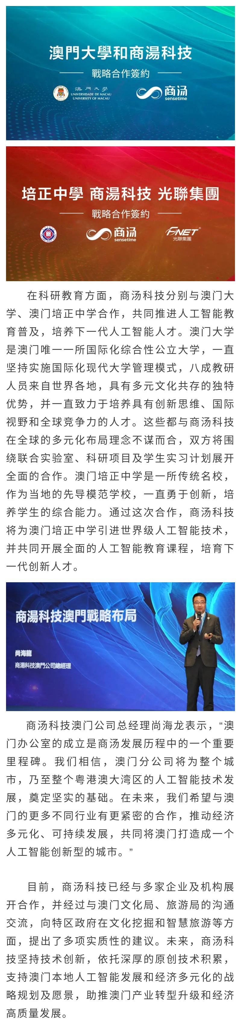 南粵基金投資企業(yè)商湯科技“落戶”澳門 助力粵澳深度合作高質(zhì)量發(fā)展