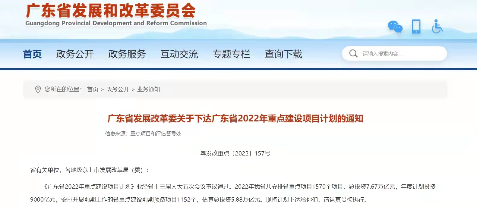 2022年是“十四五”承上啟下的重要一年。立足新發(fā)展階段,貫徹新發(fā)展理念,構(gòu)建新發(fā)展格局,推動高質(zhì)量發(fā)展,廣東正聚焦重點領(lǐng)域充分發(fā)揮投資關(guān)鍵作用,統(tǒng)籌新型基礎(chǔ)設(shè)施和傳統(tǒng)基礎(chǔ)設(shè)施建設(shè),加快建設(shè)現(xiàn)代產(chǎn)業(yè)體系,加強(qiáng)民生保障,統(tǒng)籌推進(jìn)全局性、基礎(chǔ)性、戰(zhàn)略性的重點項目建設(shè),為高質(zhì)量構(gòu)建“—核一帶一區(qū)”區(qū)域發(fā)展格局打牢基礎(chǔ)、增強(qiáng)動力,確保國家和省“十四五”規(guī)劃落地實施。