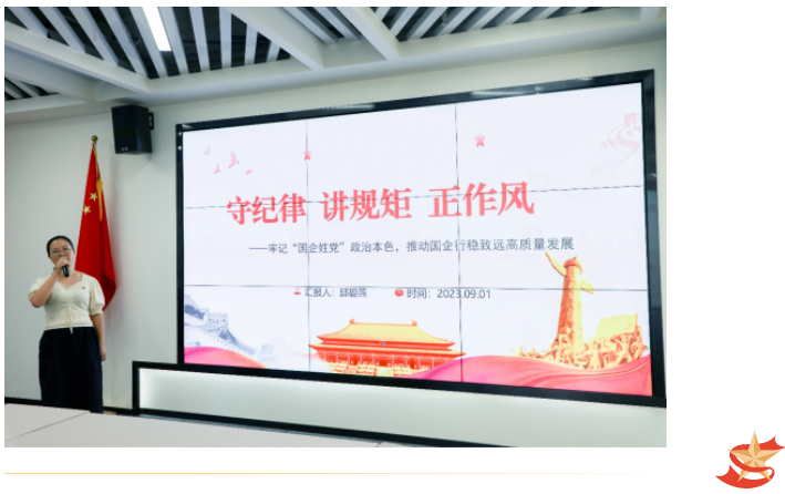 二是開展《守紀律、講規(guī)矩、正作風—牢記“國企姓黨”政治本色,推動國企行穩(wěn)致遠高質量發(fā)展》專題學習,進一步嚴明黨章及黨紀黨規(guī),闡明監(jiān)督內容及監(jiān)督對象范圍,增強遵紀守規(guī)保有敬畏的行動自覺。