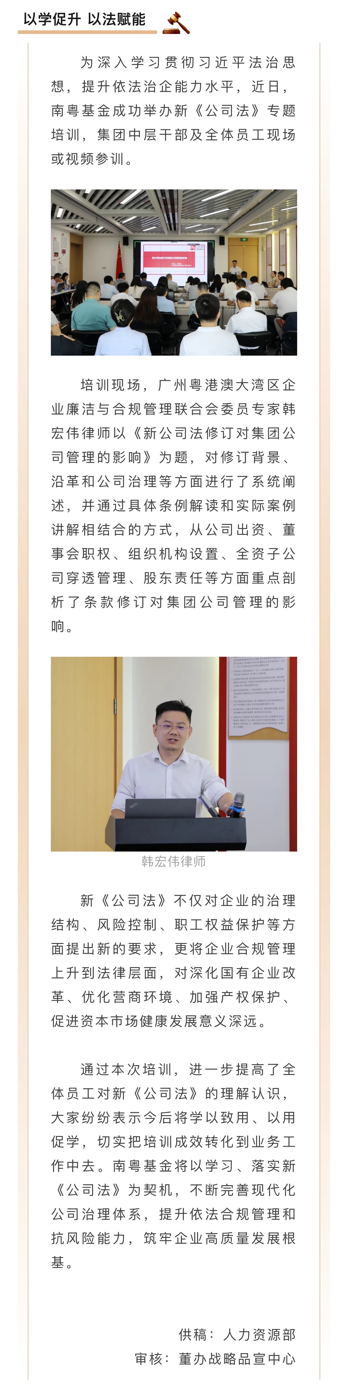 以學(xué)促升 以法賦能——南粵基金開(kāi)展新《公司法》專(zhuān)題培訓(xùn)