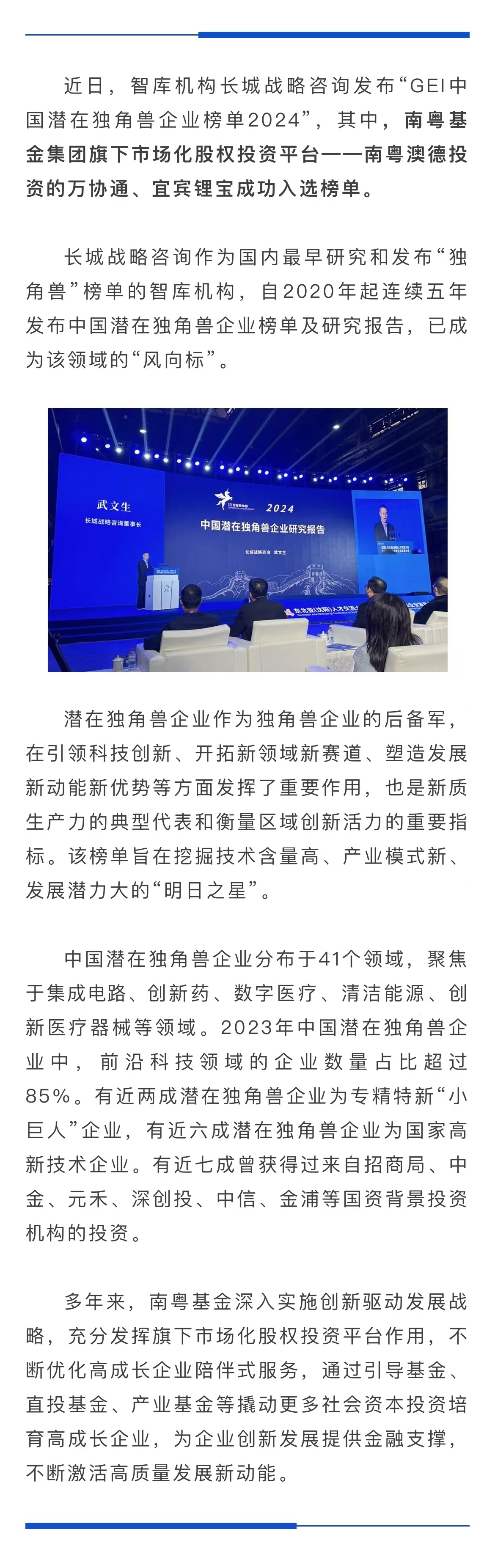 潛在獨(dú)角獸發(fā)榜!南粵基金投資企業(yè)兩家入選