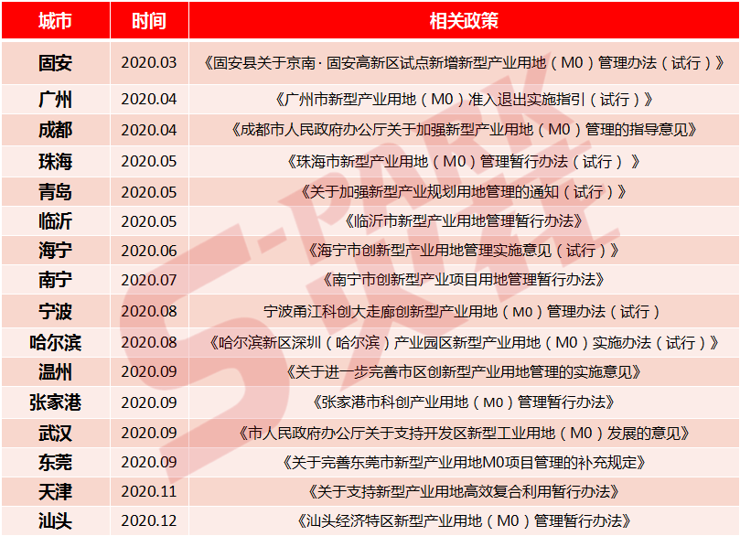 此前火花S-Park針對(duì)M0已經(jīng)有過(guò)專(zhuān)門(mén)的大部頭研究文章,有興趣的朋友可以點(diǎn)擊鏈接復(fù)習(xí)一下(《M0(新型產(chǎn)業(yè)用地)怎么玩?》)。我們這里只就2020年新出M0政策的14個(gè)城市做一下簡(jiǎn)單盤(pán)點(diǎn)梳理。