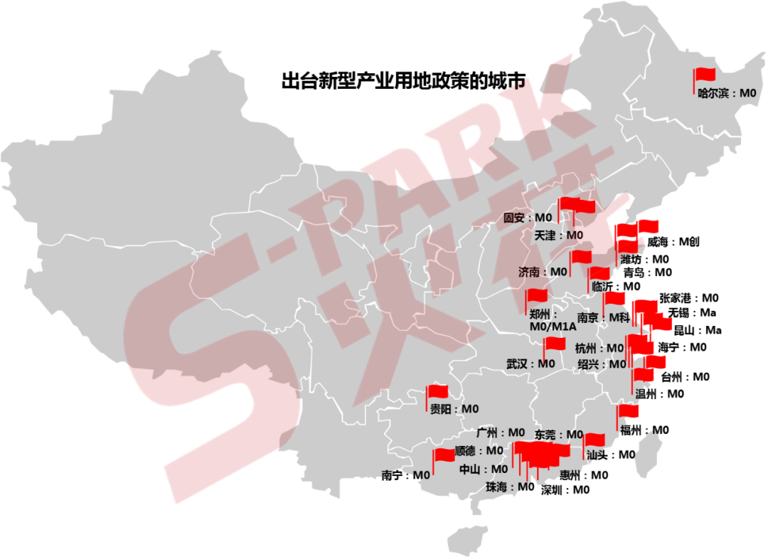 至此,全國(guó)明確出臺(tái)新型產(chǎn)業(yè)用地政策的城市已經(jīng)達(dá)到31個(gè),大部分為產(chǎn)業(yè)經(jīng)濟(jì)更發(fā)達(dá)、用地狀況更緊張的東、南部沿海城市。不過(guò)值得注意的是,中西部和東北的內(nèi)陸城市也開(kāi)始逐漸探索,如武漢、貴陽(yáng)、南寧、哈爾濱、鄭州等,還包括正在醞釀出臺(tái)M0的西安、洛陽(yáng)等等,某種程度也是希望更好地承接從東部沿海區(qū)域轉(zhuǎn)移過(guò)來(lái),以及滿足本土創(chuàng)新創(chuàng)業(yè)而生的新型產(chǎn)業(yè)業(yè)態(tài)需求。