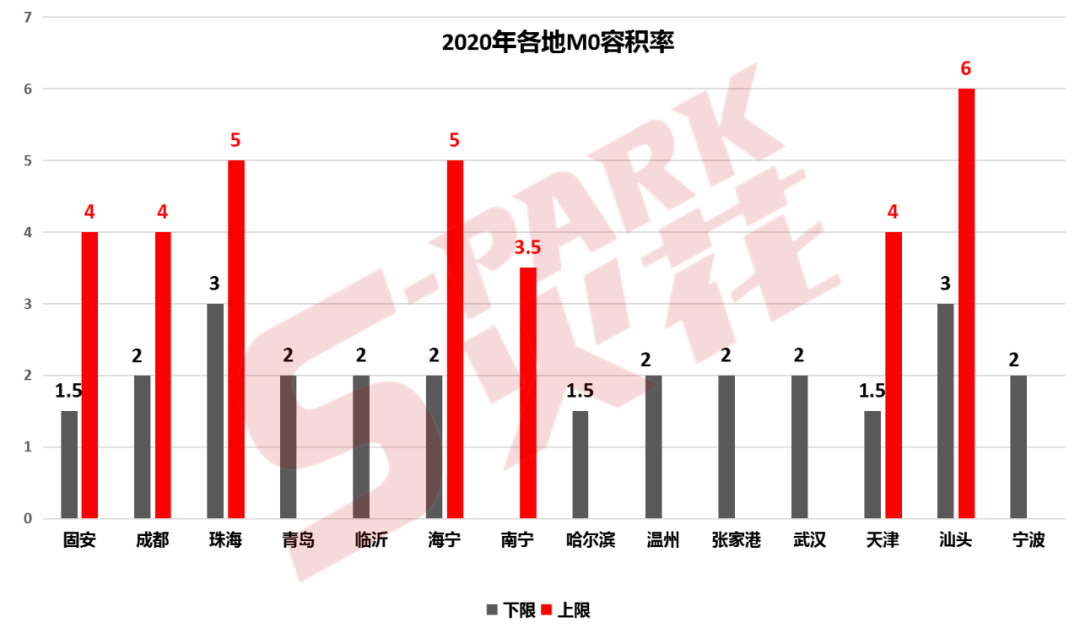 從容積率來(lái)看,大部分對(duì)M0容積率的要求都在2.0以上,這樣可以跟M1有一個(gè)很好的錯(cuò)位和承接。其中只有固安、天津和哈爾濱的下限設(shè)在1.5,位于粵港澳大灣區(qū)及強(qiáng)輻射區(qū)的珠海、汕頭下限設(shè)在3.0,汕頭的上限最高,為6.0,其次是珠海和海寧的5.0。