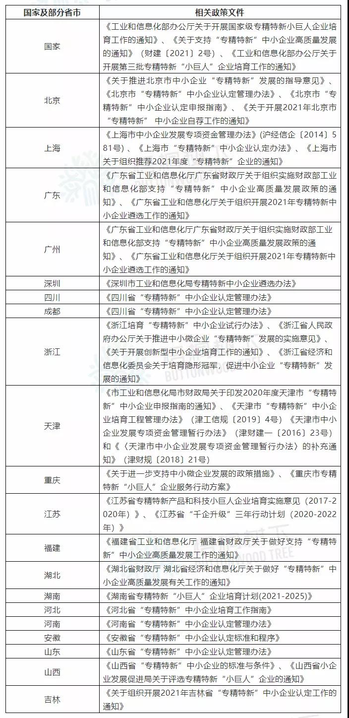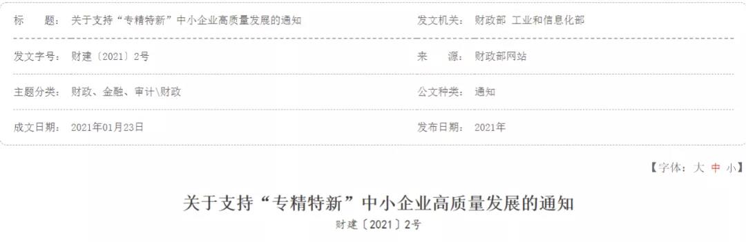 2021年1月23日,財政部、工業(yè)和信息化部聯(lián)合印發(fā)《關(guān)于支持“專精特新”中小企業(yè)高質(zhì)量發(fā)展的通知》,啟動中央財政支持“專精特新”中小企業(yè)高質(zhì)量發(fā)展政策。為讓企業(yè)對申報相關(guān)事宜有更深入的了解,現(xiàn)對各地申報認定“專精特新”政策進行匯總。
