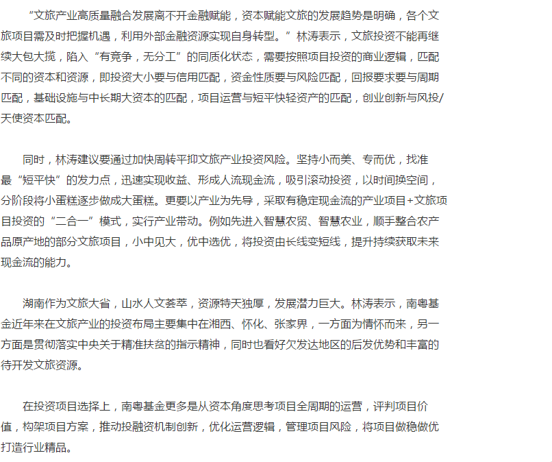 中國日報(bào)|南粵基金董事長林濤:金融賦能文旅產(chǎn)業(yè)高質(zhì)量融合發(fā)展
