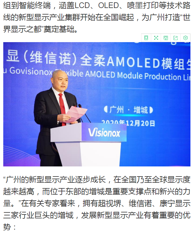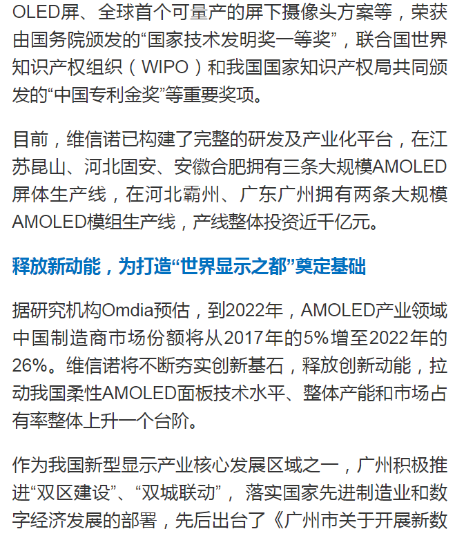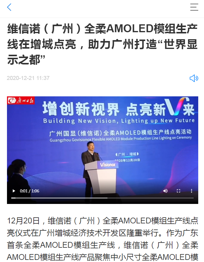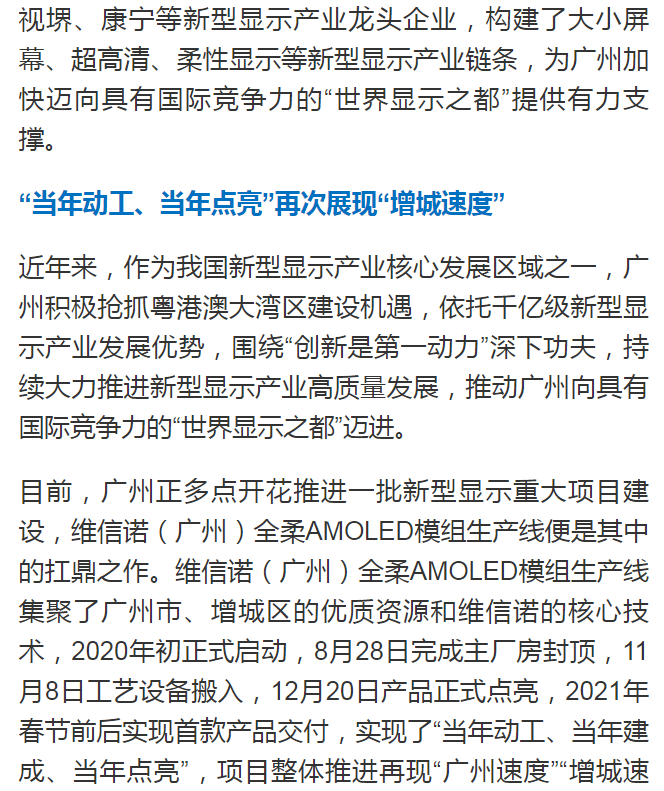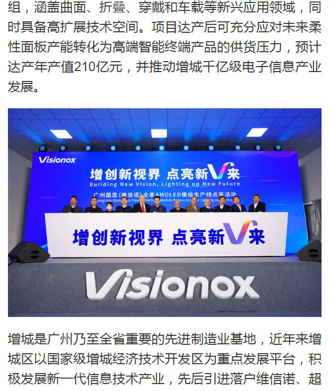 廣州日報(bào)|維信諾(廣州)全柔AMOLED模組生產(chǎn)線在增城點(diǎn)亮,助力廣州打造“世界顯示之都”