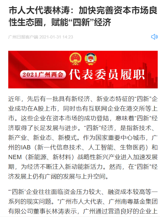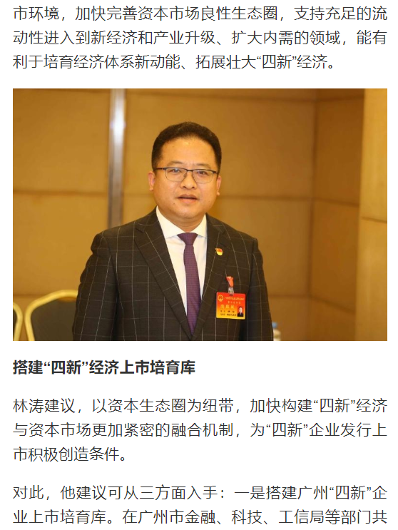 廣州日?qǐng)?bào)|市人大代表林濤:?加快完善資本市場(chǎng)良性生態(tài)圈,賦能“四新”經(jīng)濟(jì)
