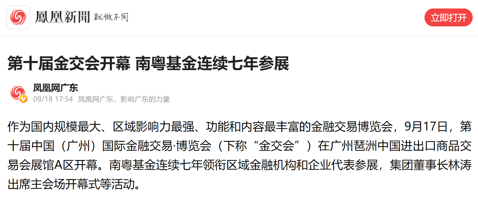 鳳凰網(wǎng)|第十屆金交會開幕 南粵基金連續(xù)七年參展
