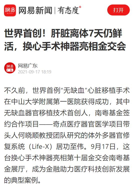 網(wǎng)易新聞|世界首創(chuàng)!肝臟離體7天仍鮮活,換心手術(shù)神器亮相金交會(huì)