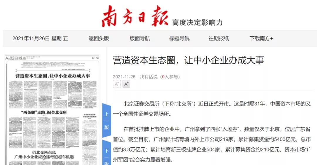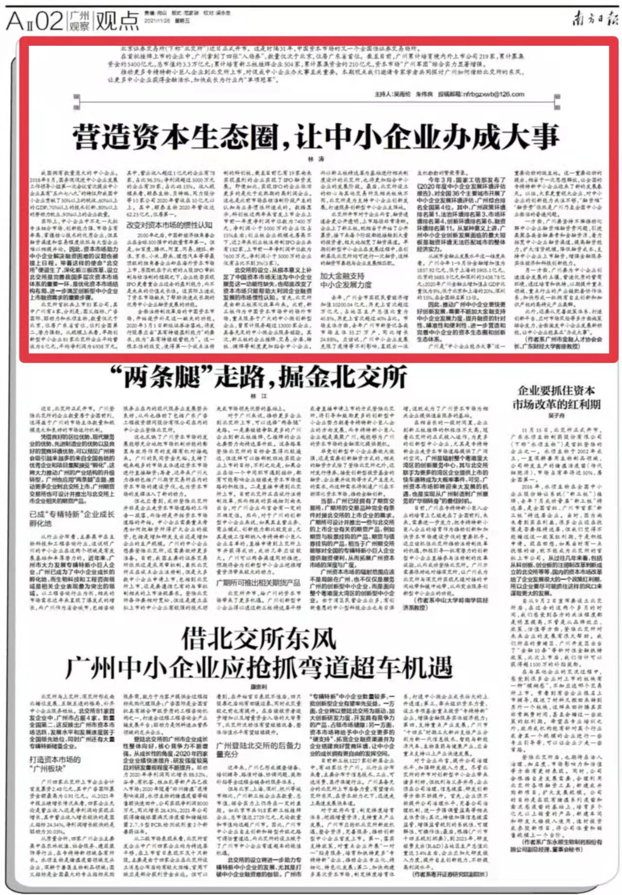 南方日報 | 林濤會長署名文章:營造資本生態(tài)圈,讓中小企業(yè)辦成大事