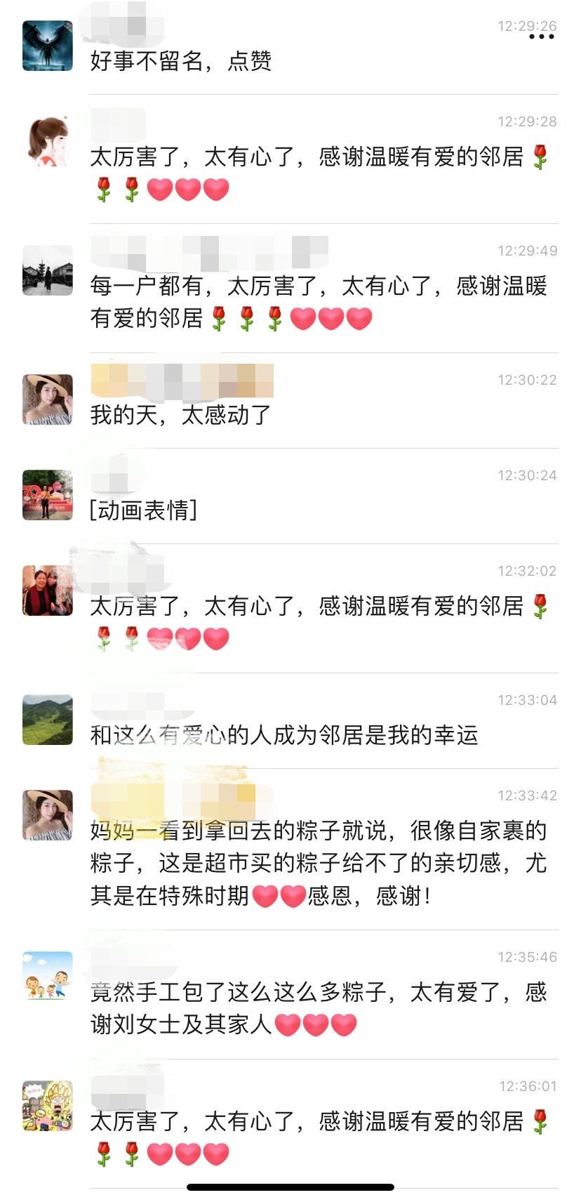 疫情期間,為了讓鄰里在端午節(jié)能吃上美味的粽子,住在荔灣廣鋼新城的劉燕一家六口,日以繼夜完成了一項浩大的“工程”——包粽子,3000 個!向所在小區(qū)700余戶鄰居每家送上四個,為共克時艱貢獻一份綿薄之力。