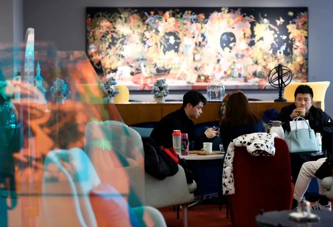 ▲北京市民在通州運(yùn)河商務(wù)區(qū)的一家咖啡館內(nèi)交談。新華社記者 金良快 攝